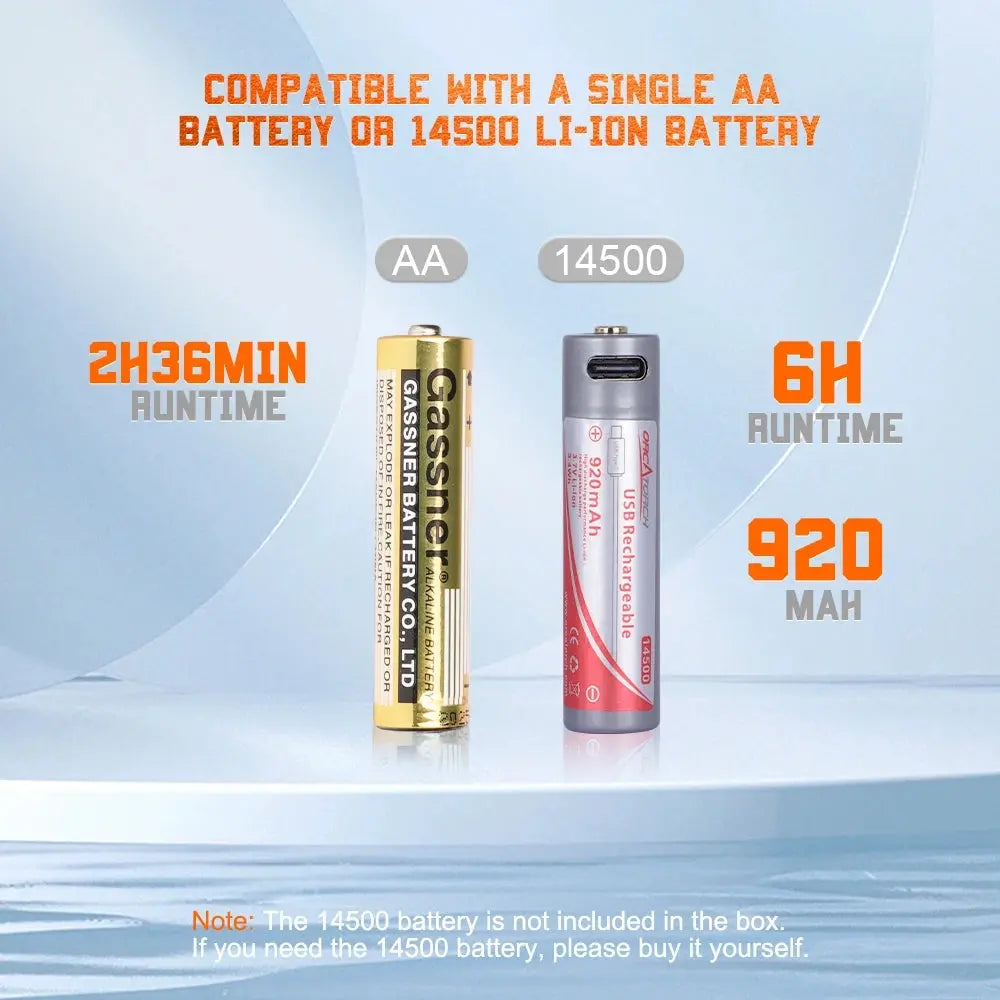 * 単三電池1本または14500リチウムイオン電池を使用